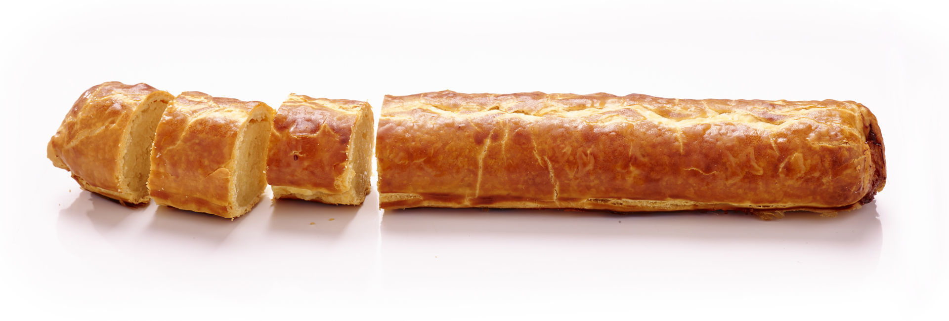 Roomboter bladerdeeg met 100% amandelspijs, iedere dag vers afgebakken.